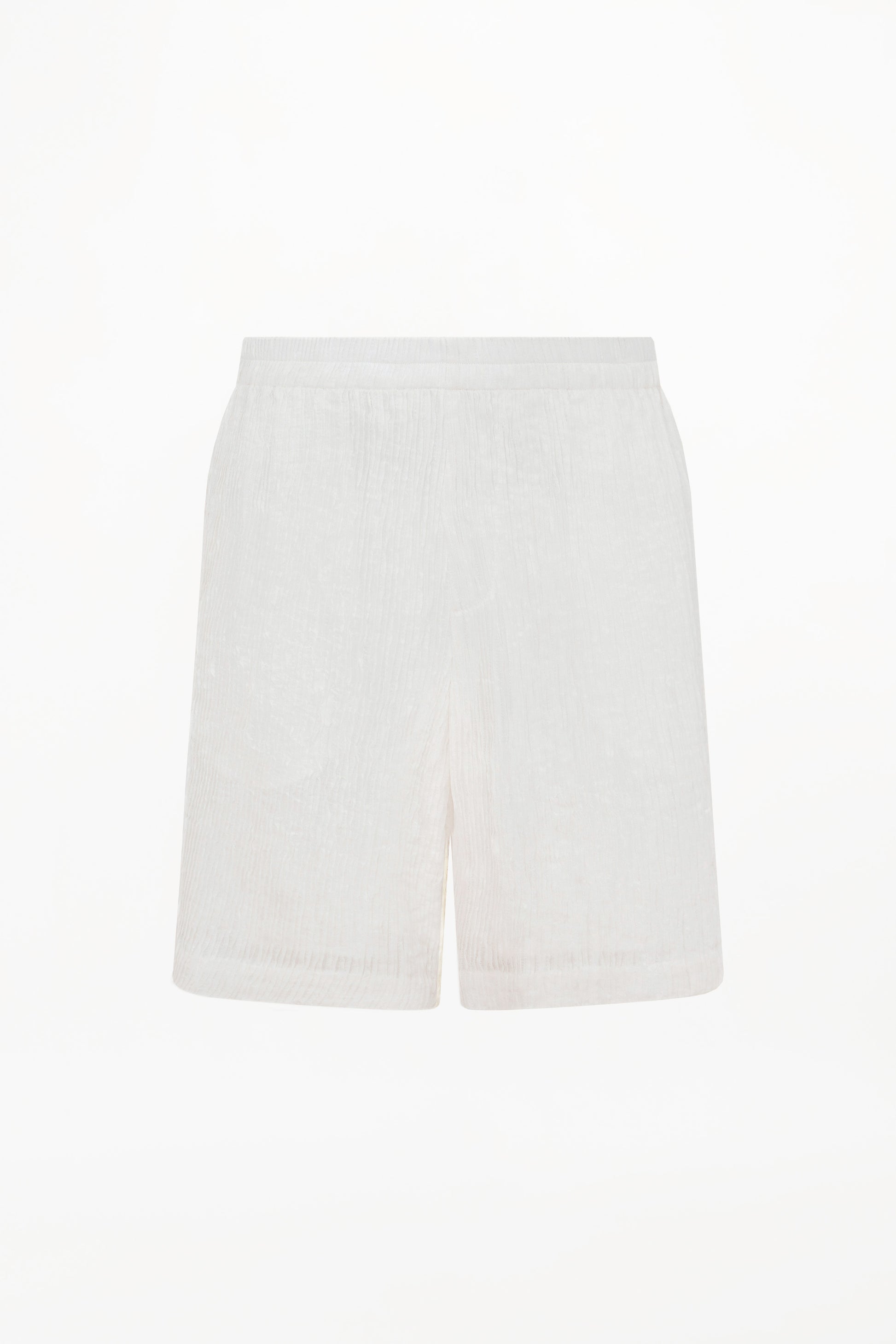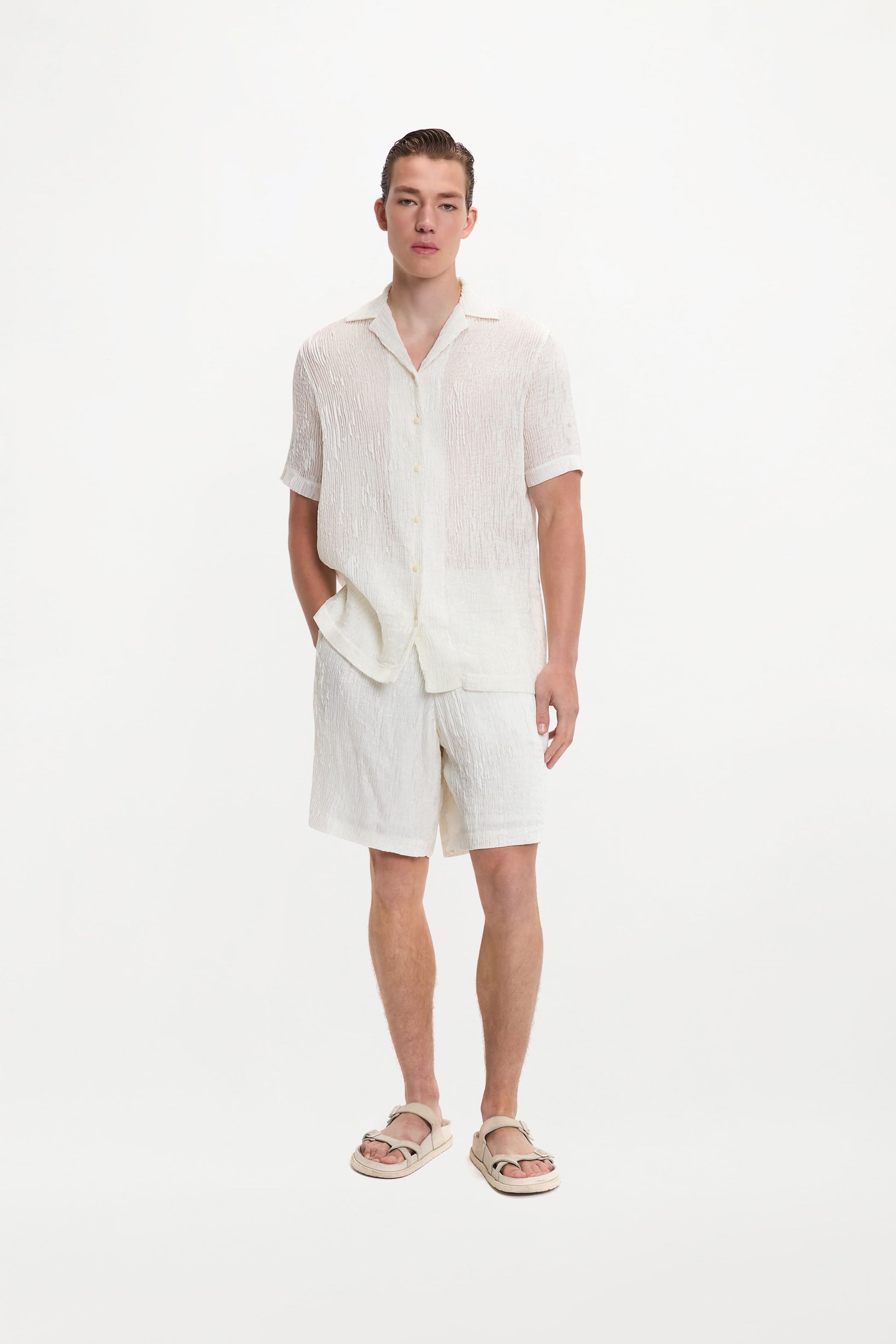 Laid-back tailoring with a tactile edge. The Aurelius Shorts are crafted in Delos’ signature hand-pleated fabric developed in-house, where no two textures are quite the same. Lightweight with a soft structure, they balance craft and comfort, offering a refined foundation for both coastal ease and...