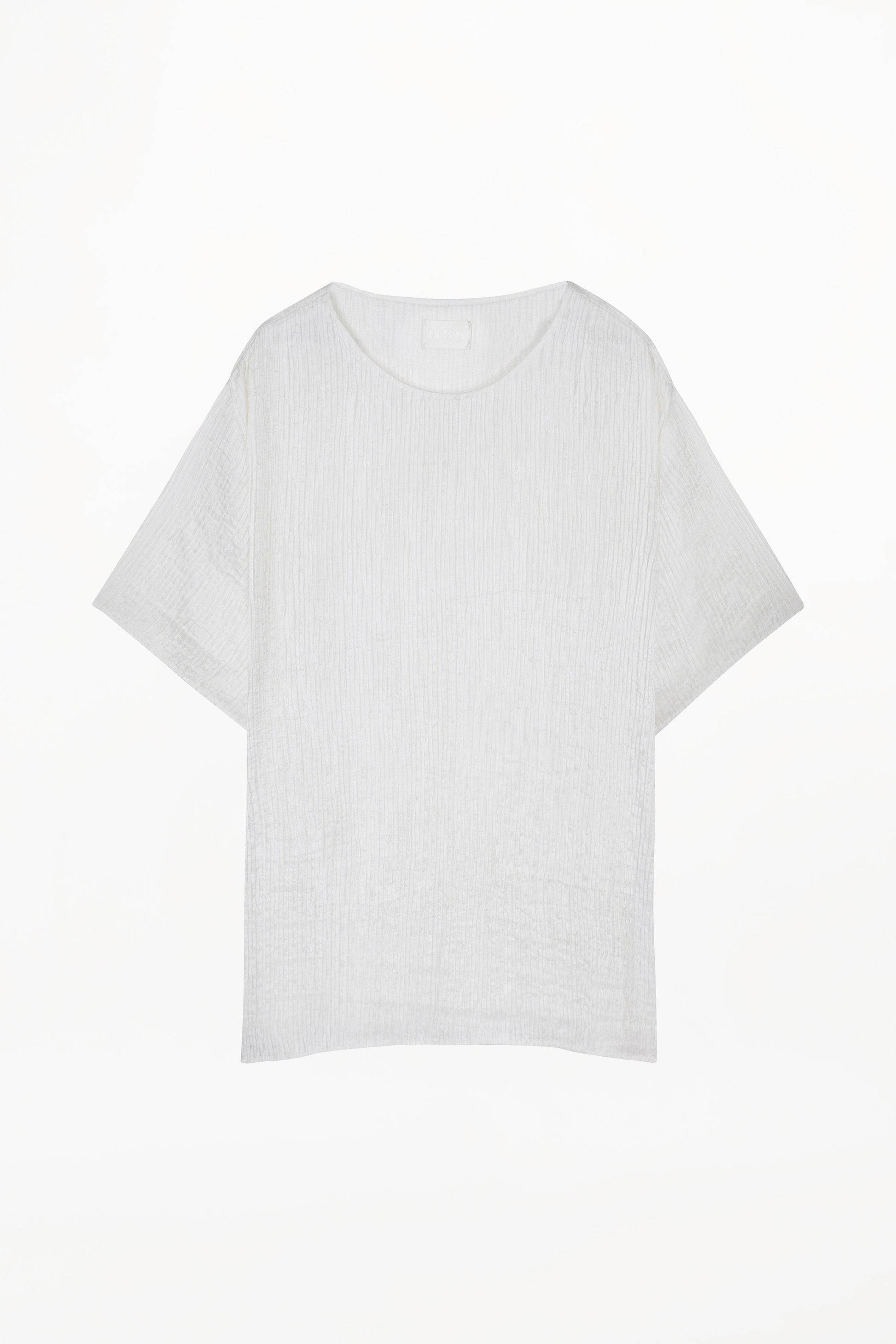 Relaxed proportions, reimagined in silk. This crew-neck top is cut from Delos’ signature hand-pleated fabric developed in-house. The silhouette is easy, the feel elevated, making it a refined staple for layered dressing or standalone simplicity. Understated, with intent.