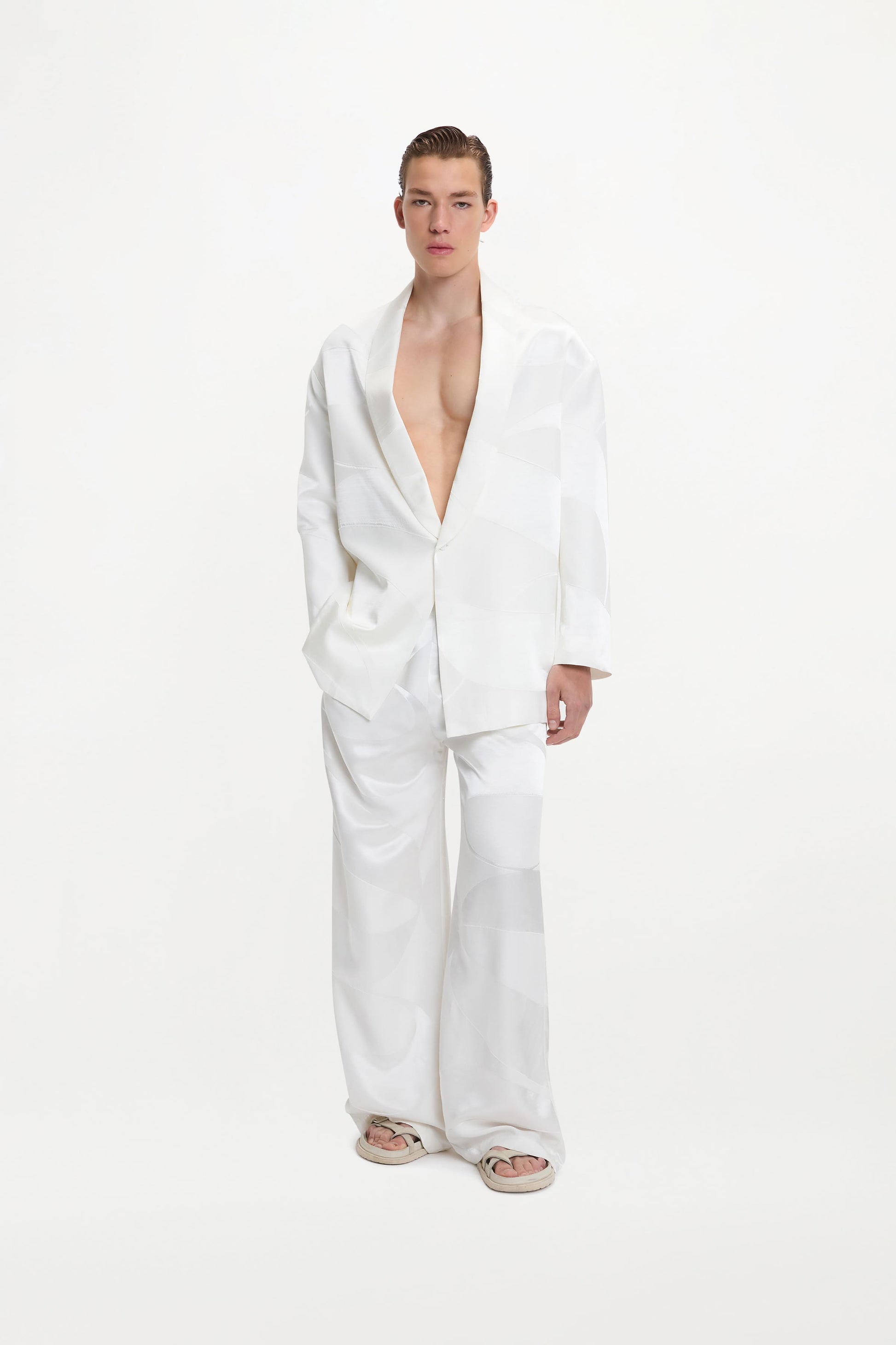 Signature shape, reimagined in an exclusive Delos fabric. The Clement Trousers are wide-leg, cut in silk pintuck - a uniquely crafted textile with hand-manipulated pleats and subtle texture throughout. Light, easy, and elevated by design.