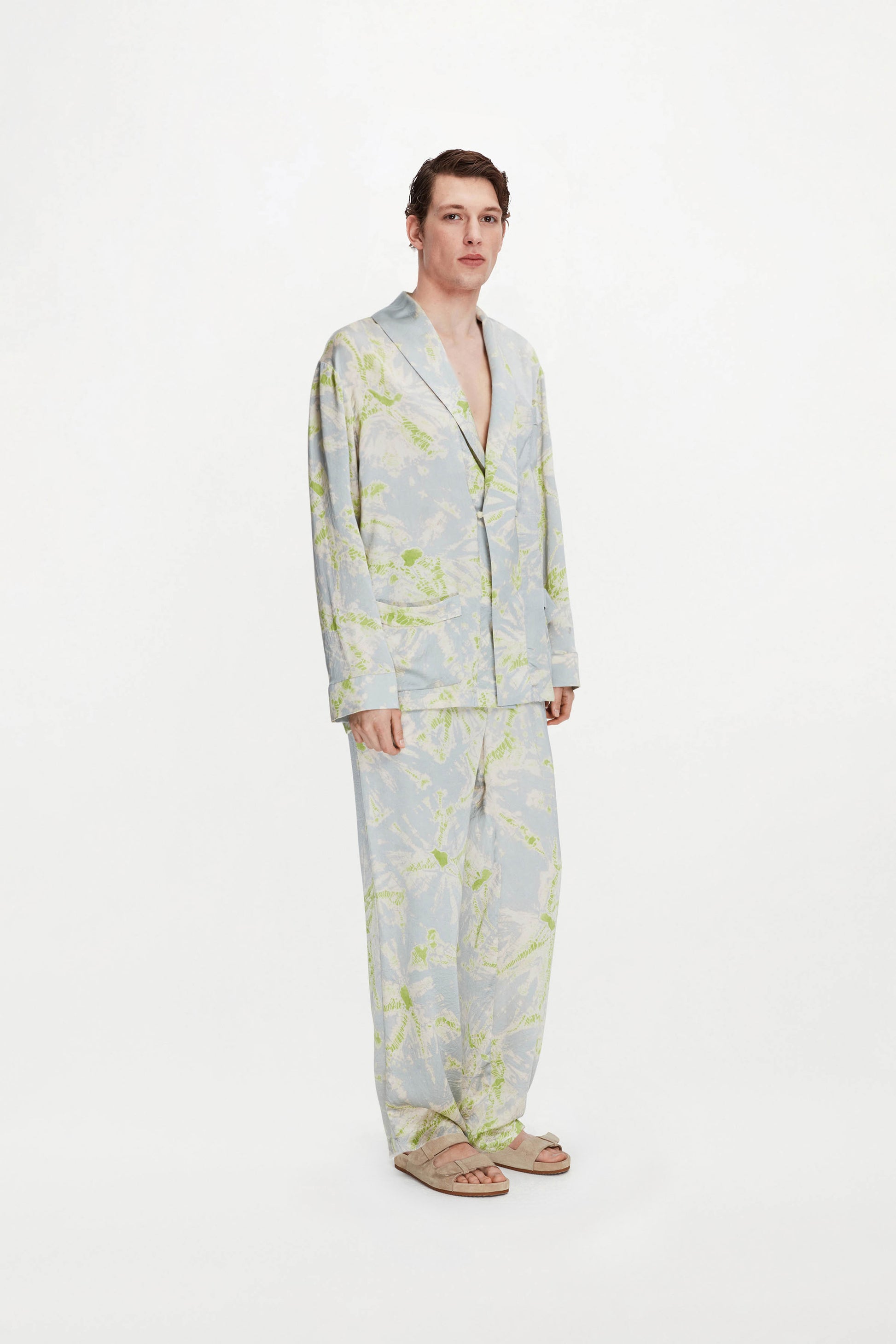 The Gilbert Jacket riffs on pyjama dressing, with a relaxed shape and a soft satin finish. Wear it oversized, or size down for a cleaner fit.