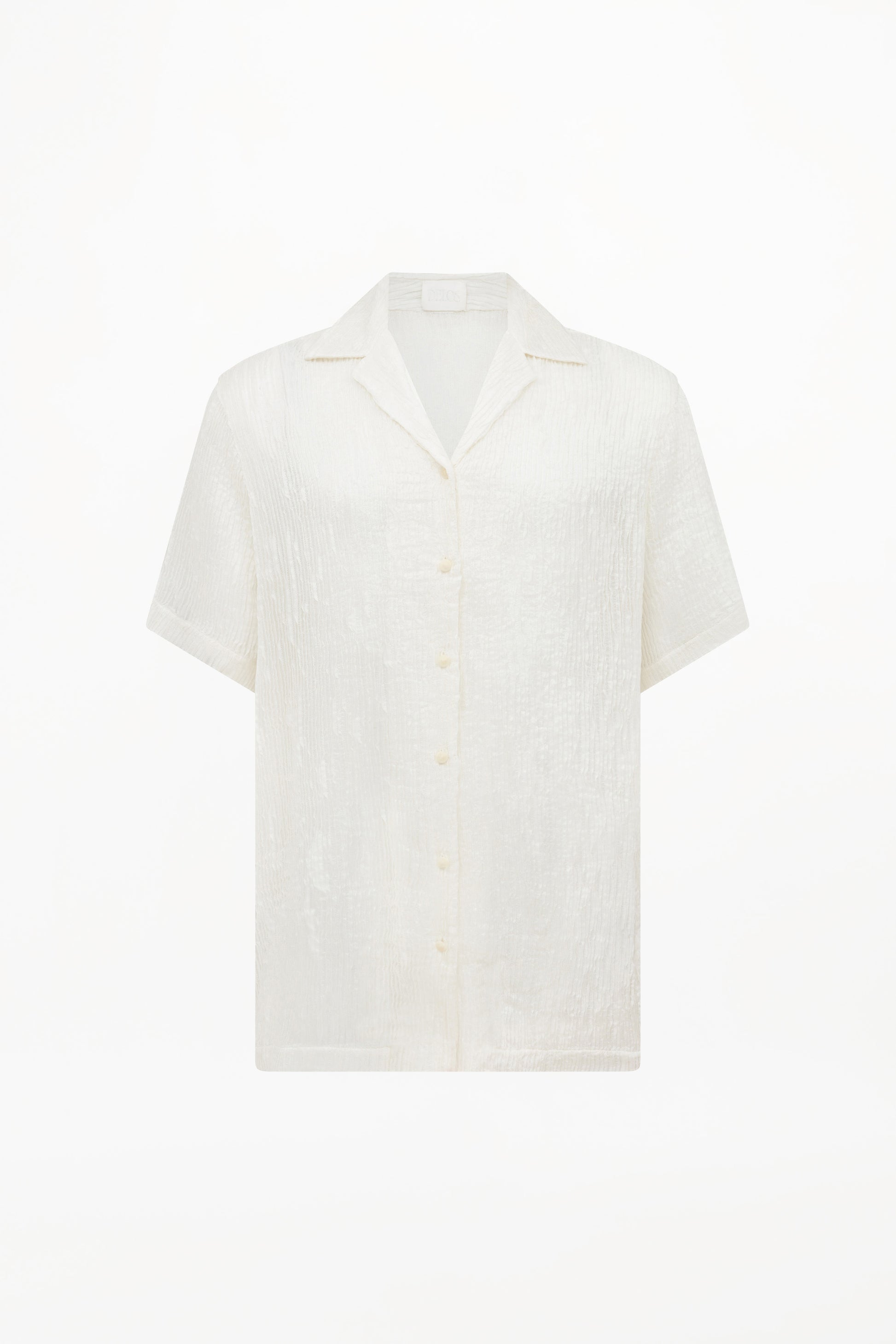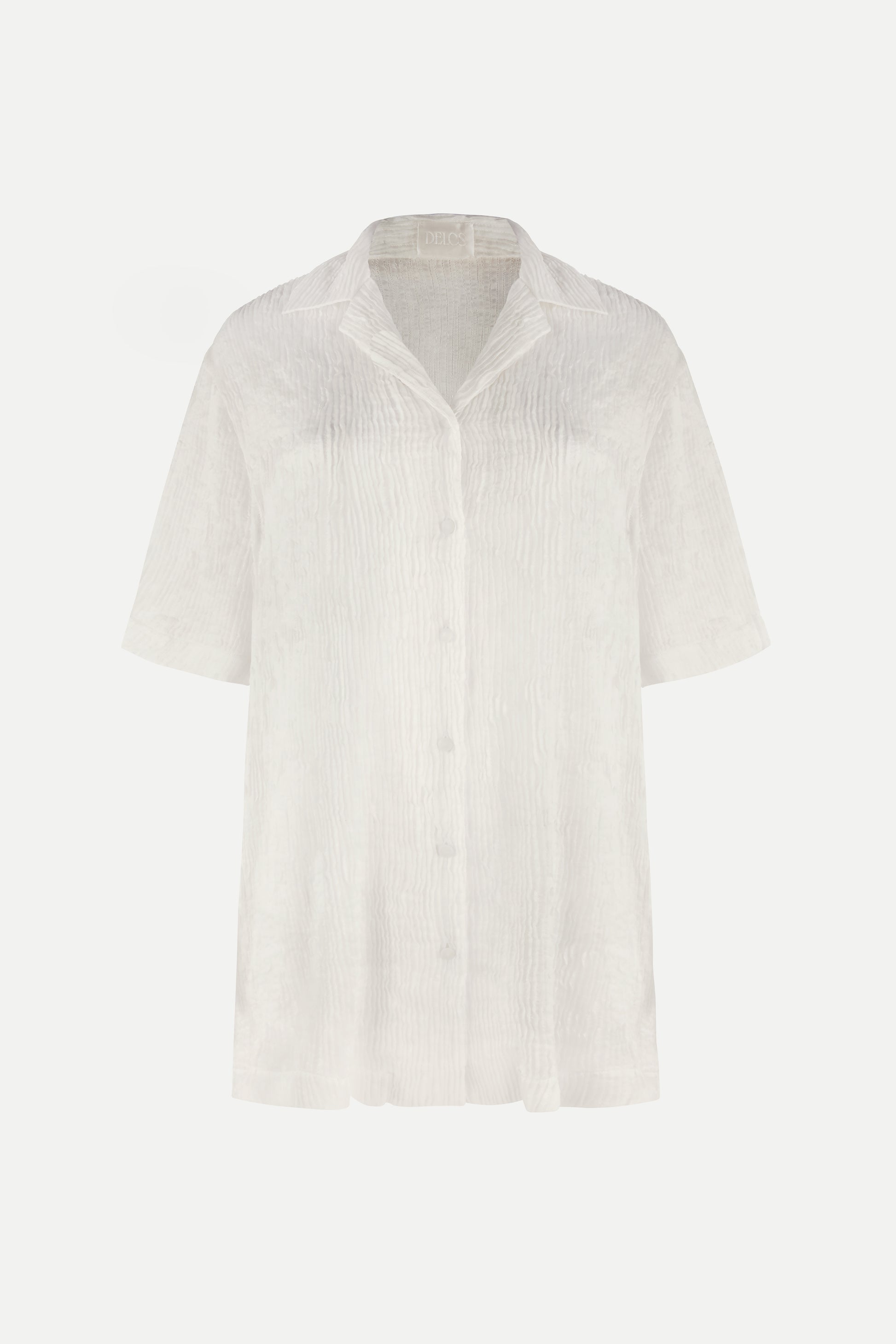 The Otto shirt is cut from fine hand-pleated silk, where precise folds lend quiet structure and tonal depth to its relaxed Cuban-collar frame. Short sleeves and a clean button-through front keep the silhouette effortless, allowing the fabric’s subtle texture to move easily between...