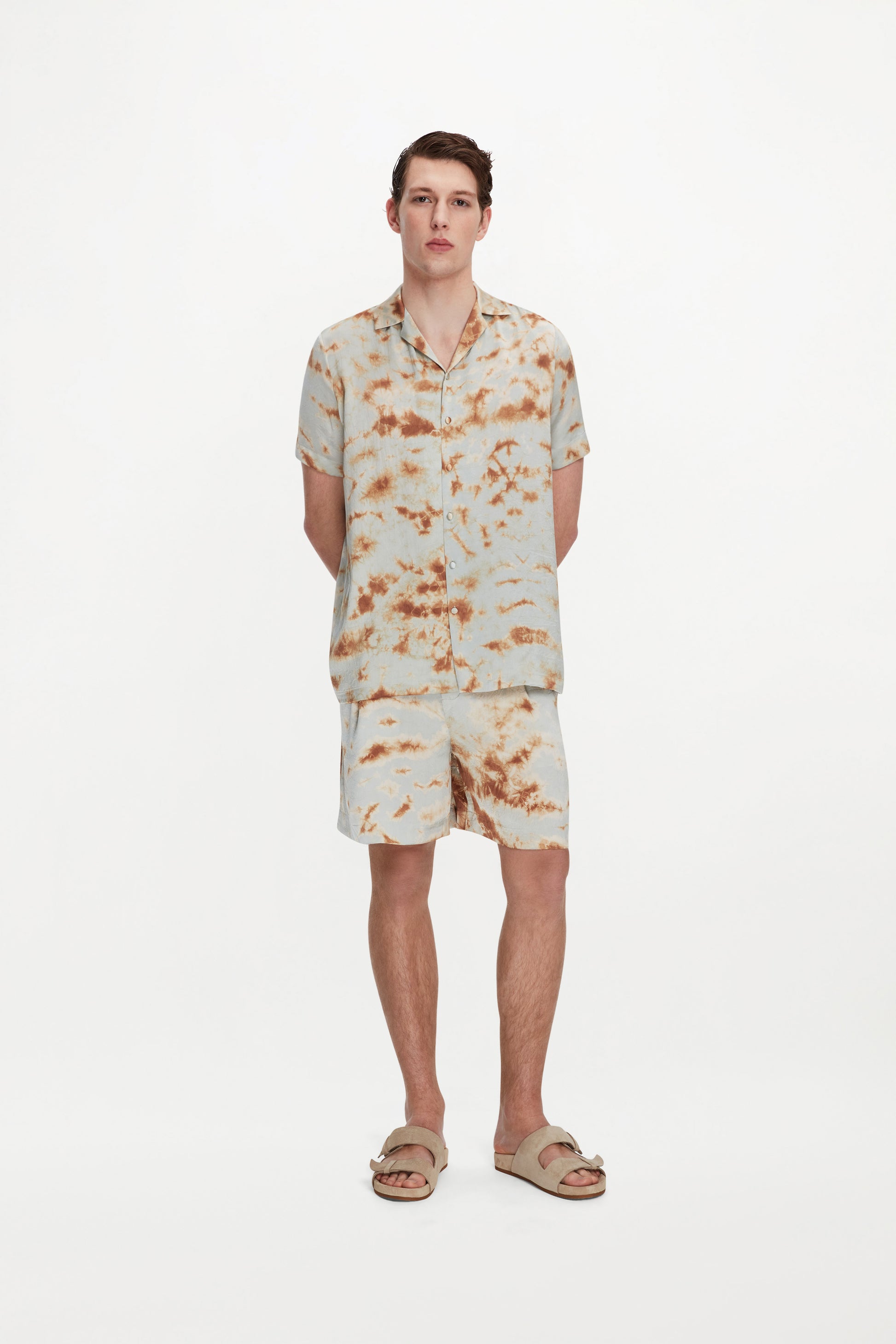 The Otto shirt is cut from fine hand-pleated silk, where precise folds lend quiet structure and tonal depth to its relaxed Cuban-collar frame. Short sleeves and a clean button-through front keep the silhouette effortless, allowing the fabric’s subtle texture to move easily between laid-back layers...