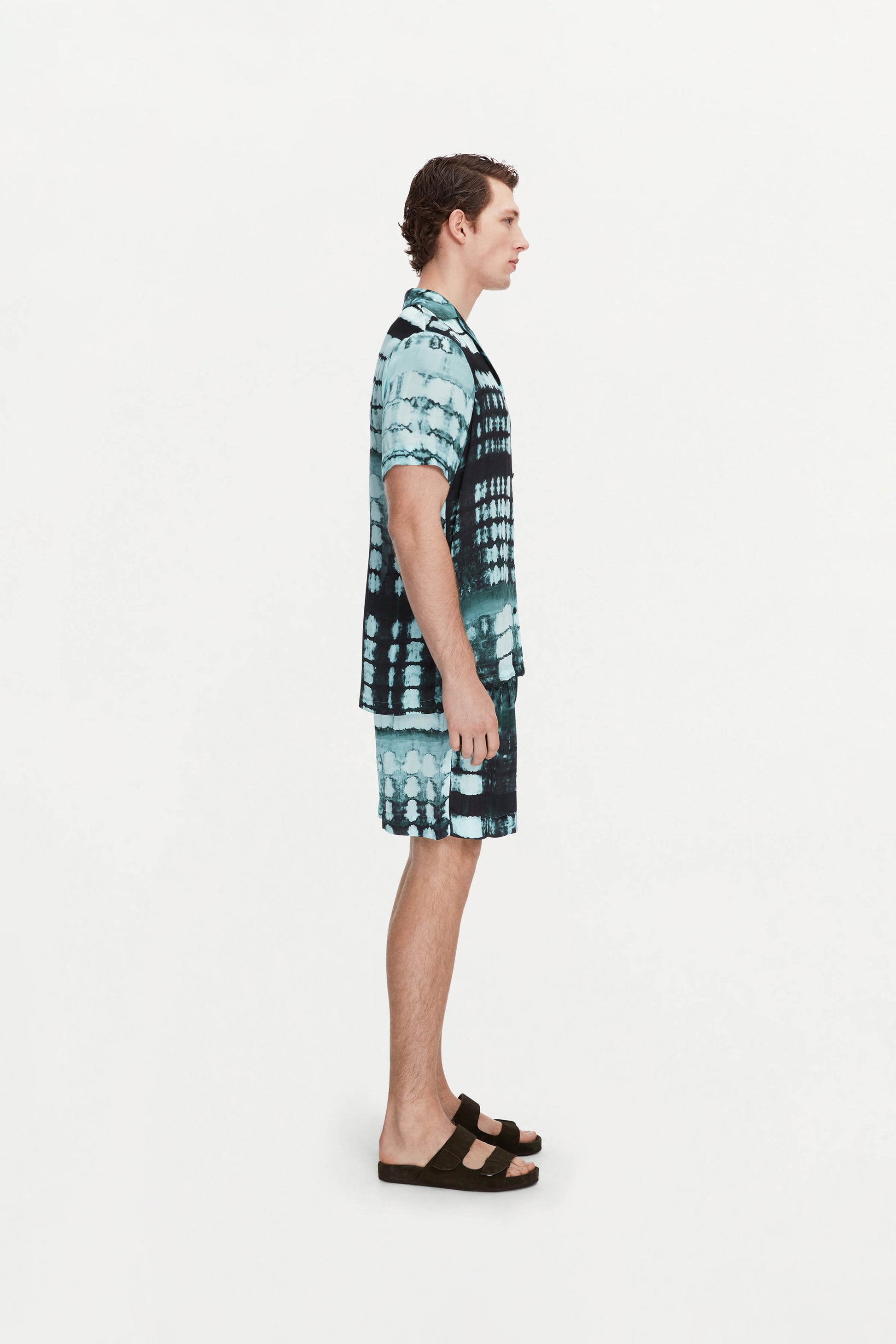 The Otto Shirt has an easy drape with just enough structure to hold its shape. Printed in Delos’ exclusive Nocturne Croc, it works open over swim or buttoned up for evening.